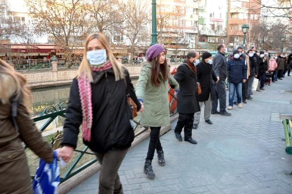 “Termik santrale hayır” diyen Eskişehirliler, hava kirliliği tehlikesine karşı beyaz maskeler takarak Adalar semtinde “sevgi zinciri” kurdular