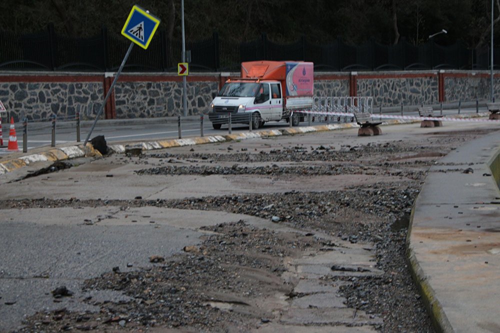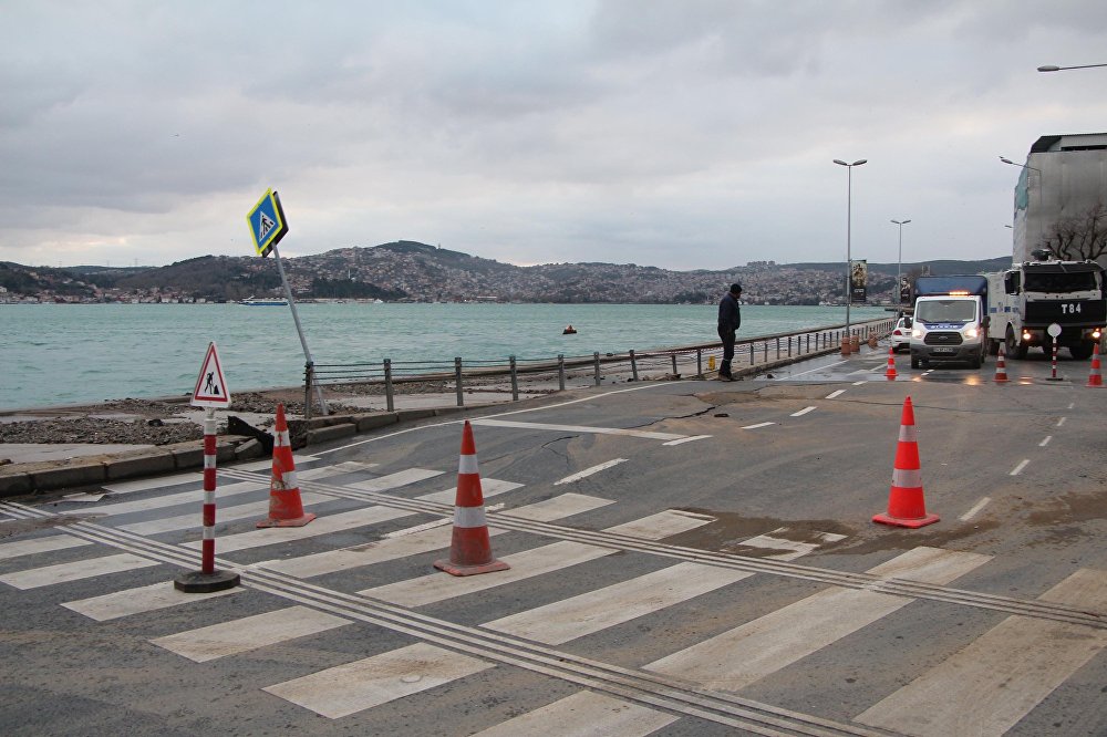 Sarıyer Tarabya sahilinde yolda çökme ve kabarmalar meydana geldi. Çökme nedeniyle Tarabya- Yeniköy arası trafiğe kapatıldı