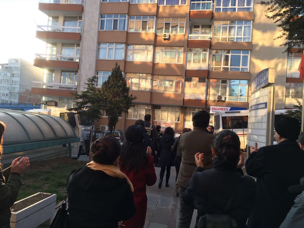 TTB önünde dayanışma için bekleyenler aramanın sonlanması ve avukatların bilgilendirmesinin ardından alkışlarla TTB önünden ayrıldı.