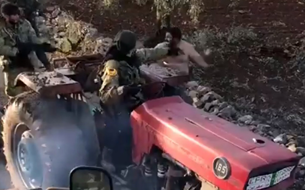 Şam yönetimine yakın olduğu düşünülen bir sosyal medya hesabı, videoyu “ÖSO” bünyesindeki cihatçıların Afrin kırsalında bir sivili öldürüp traktörüne el koyduğu notuyla paylaştı.