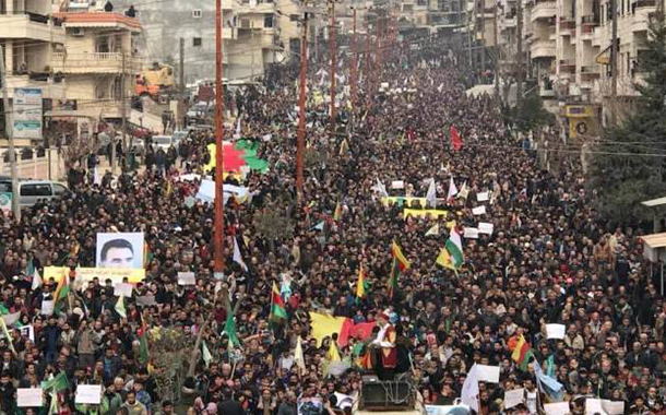 TSK’nin Afrine yönelik sürdürdüğü askeri operasyonlara karşı Afrin’de büyük miting