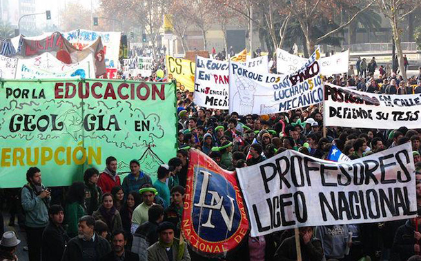 Bütün bunlar düşünüldüğünde, Şili’de eğitime erişim, öğrencilerin muazzam borçlar yüklenmesi anlamına geliyordu. Devlet Güvenceli Öğrenci Kredileri üzerinden, Bachelet’in eğitim politikası, verdikleri hizmetler için en az yüzde 6 faiz oranı uygulamakta olan bankalar açısından çok büyük bir devlet-destekli kâr kaynağı haline geldi. 2011 yılı itibariyle, Şilili lise mezunu öğrencilerden 10 bin kadarının eğitimlerine devam etmek için komşu ülkelere göç ettiği bir “eğitim sürgünü”nden bahsedilir hale geldi.