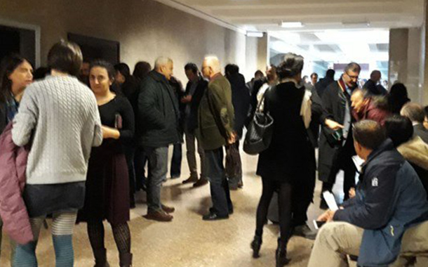 TTB Başkanı Prof. Dr. Raşit Tükel Ankara Adliyesi’nde, TTB ile dayanışma için gelenler tarafından böyle karşılandı.