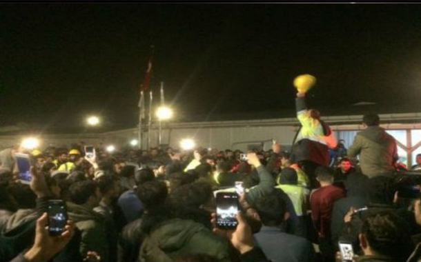 Those employed at the site recently marched to the camp administration building, shouting slogans of “We want to live like humans” and “Down with the enemies of the workers,” prompting gendarmerie officers to erect a barricade in front of the camp administration.
