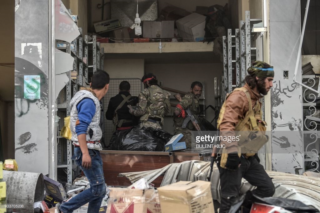 Cihatçı çetelerin Afrin kent merkezinde gerçekleştirdiği yağma AFP muhabiri Bülent Kılıç’ın objektifine yansıdı.