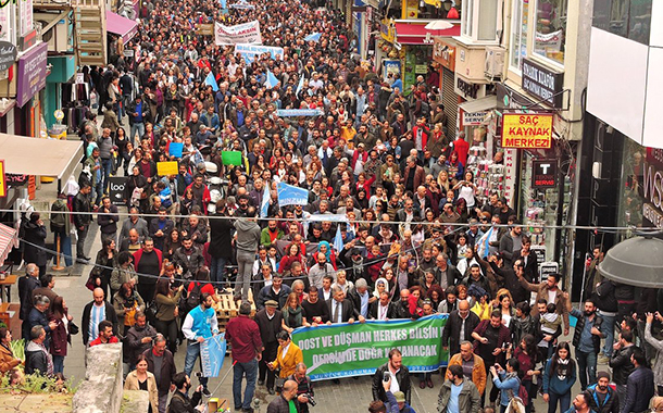 Yaşamın çağrısına kulak verenlerle birlikte bütün temel haklarımız için, barış içinde insanca yaşam için, eşit, özgür, demokratik bir ülke için ayaktayız.