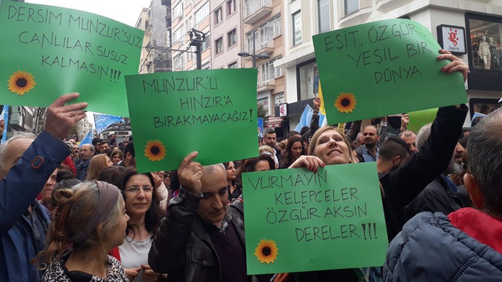 Süreyya Operası önünde bir araya gelerek “HES yapma boşuna, yıkacağız başına”, “Munzur özgür akacak” sloganlarıyla Rıhtım’a yürüyen kent ve doğa savunucularına CHP Milletvekili Gürsel Erol ve HDP Milletvekili Erdal Ataş da destek verdi.