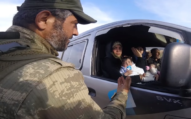 Yaklaşık 14 dakikalık videoda, aralarında kadın ve çocuklarında bulunduğu sivillerin birkaç araçlık bir konvoyla Meydanki köyüne gitmek istedikleri anlaşılıyor.