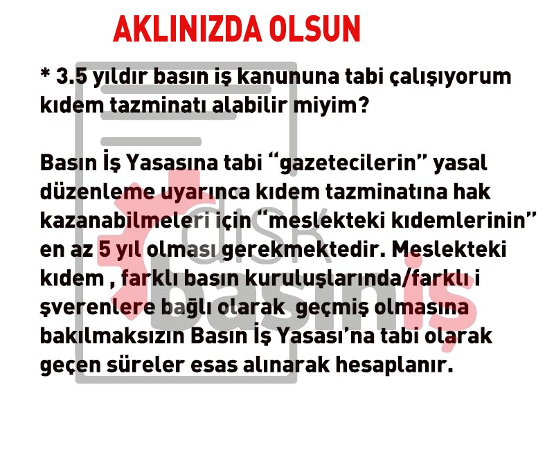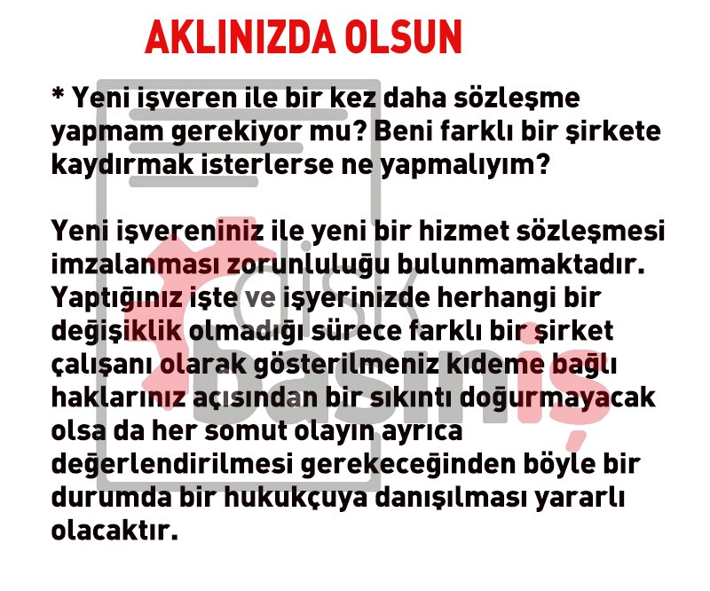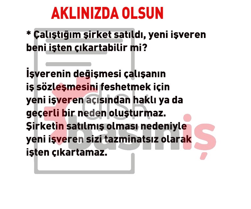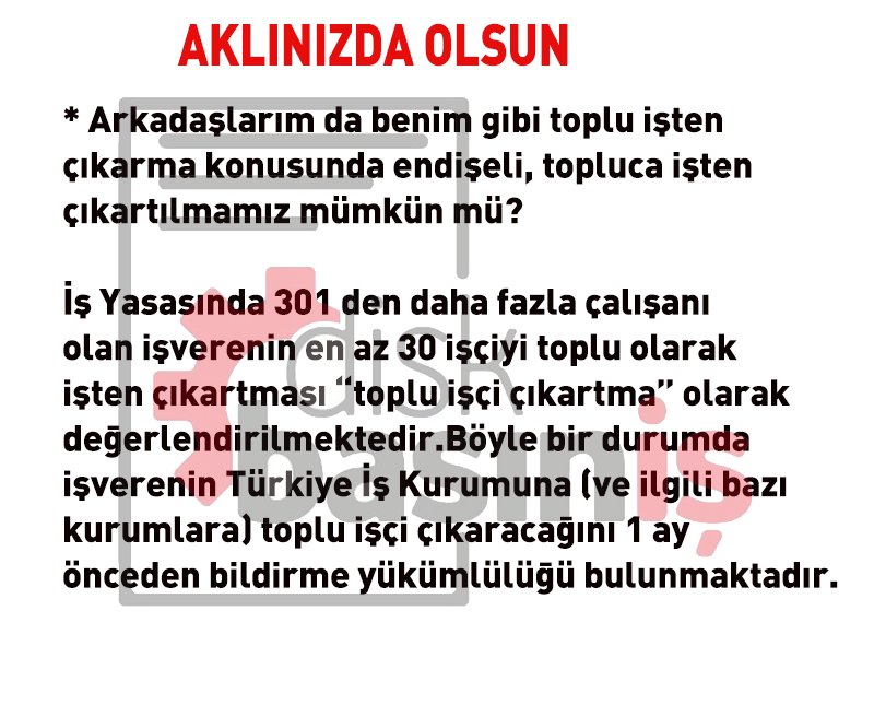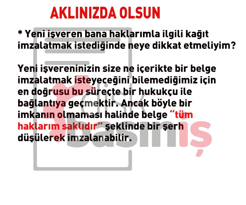 DİSK Basın-İş’in “Doğan Grubu’nda çalışan emekçiler, her zaman yanınızdayız, insan, haklarıyla insandır, emeğimizi savunmak için bir aradayız. Önümüzdeki süreçte hak kaybına uğramamanız için #AklınızdaOlsun” diyerek Twitter hesabından yayımladığı kılavuzda yaşanabilecek olası sorunları ifade eden sorular sendika avukatlarınca yanıtlandı.