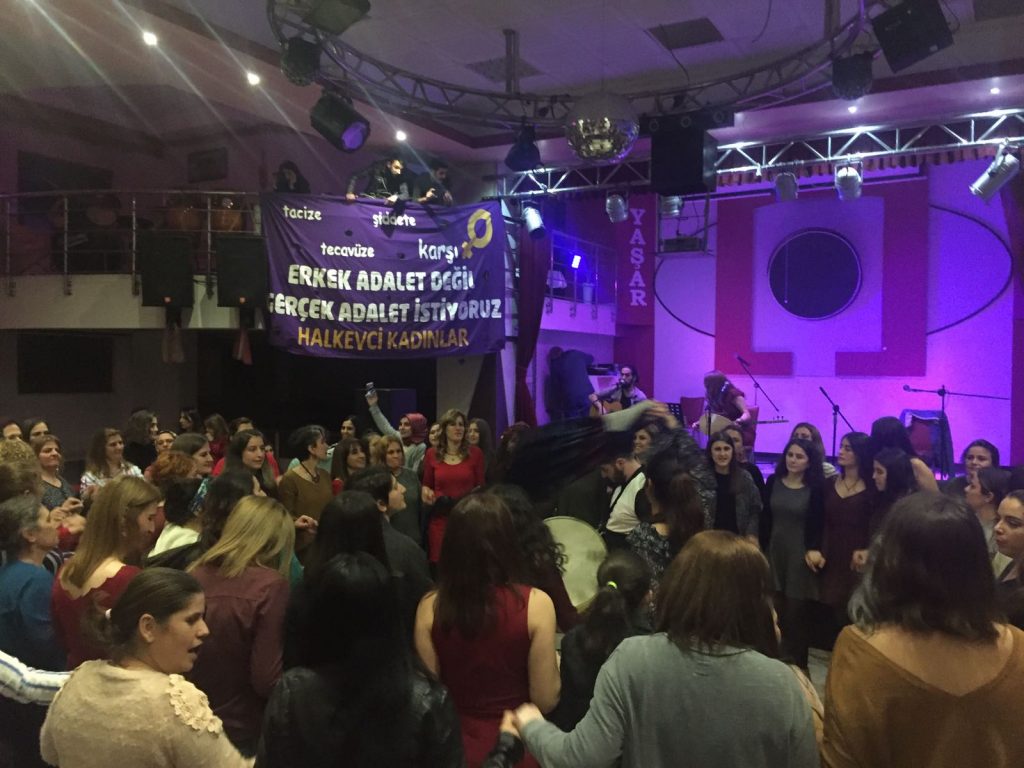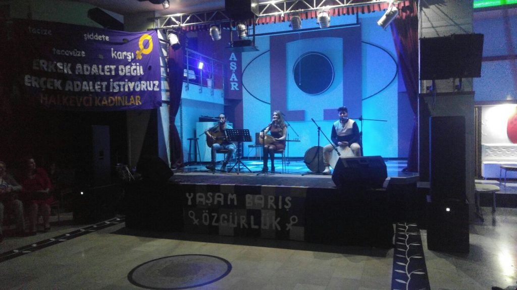Arduç’un konuşmasından sonra “Yüreklerimiz acıyla dövüle dövüle çelikleşti. Bir küçük ışıltıyla baharı bekleyen çekirdek ateşten korkmuyor.Korkmuyoruz ateşten. Bizleri susturacaklarını zannedenlere sesimiz cevap olsun” diyen Hopa Yaşam ve Kadın Korosu sahne aldı.