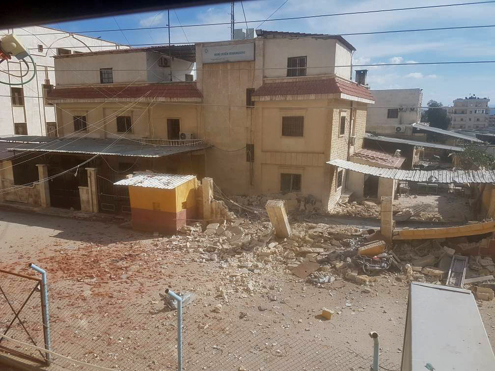 Hastanenin bir başka açıdan çekilmiş görüntüsü, ANHA’nın dediği gibi söz konusu sarı binanın hastane olduğunu doğruluyor.