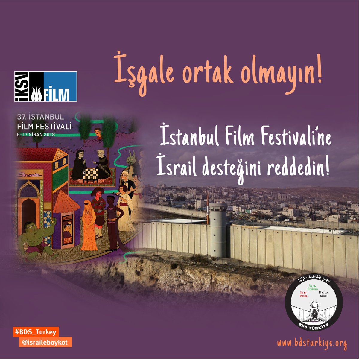 BDS Turkey’s call to IKSV (İstanbul Foundation for Culture and Arts) for abandoning the sponsorship relation and to the directors who participate to the festival for withdrawing their films because of that the Israel Foreign Ministry is one of the this year’s sponsors of İstanbul Film Festival via an institution named ARTISRAEL has had repercussion