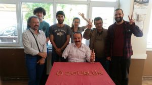 Dostlar Kahvesi’ndeki etkinliğe “Memleket Biziz” çağrıcılarından Veli Saçılık katıldı. Yürüttükleri çalışmanın bir yurttaş inisiyatifi olduğunu belirten Saçılık, diktatörlüğe karşı en geniş kesimin sesini örgütleyebilecek, ortaklıklarla hareket edilebilecek bir birliğe ihtiyaç olduğunu söyledi.