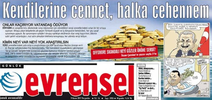 Enerji ve Tabii Kaynaklar Bakanı Berat Albayrak ile kardeşinin de adının geçtiği, Başbakan Binali Yıldırım’ın iki oğlunun da ‘off shore’ şirket sahibi olduğunu ortaya koyan ‘Paradise Papers’ olarak adlandırılan belgeleri haberleştiren Evrensel’e Berat ve Serhat Albayrak’ın şikayeti üzerine ‘hakaret’ ve ‘iftira’ suçlamalarıyla dava açıldı. Davaya ilişkin konuşan Evrensel’in avukatı Devrim Avcı, “Bu haberin hakaret ve iftira olduğundan bahisle dava açılması, basın üzerinde yargı eliyle bir sansür anlamına gelmektedir” sözleriyle değerlendirdi.