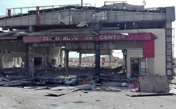 Saldırı sonrası Halep’teki Neyrab Askeri Havaalanı yakınlarındaki Malikiye ilçesinde tahrip olan bir garaj