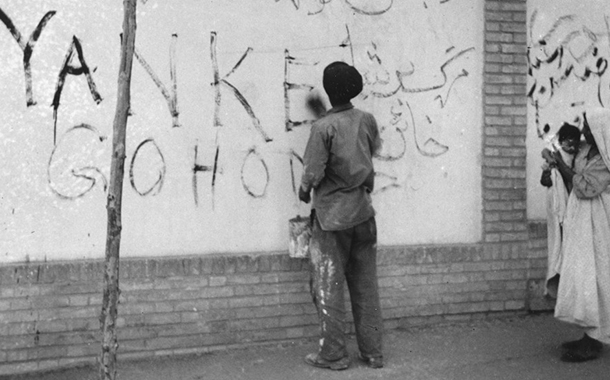 1953 darbesinin ardından bir Şah destekçisi “Yankee Go Home” (Yankee evine dön) duvar yazısının üzerini boyarken.