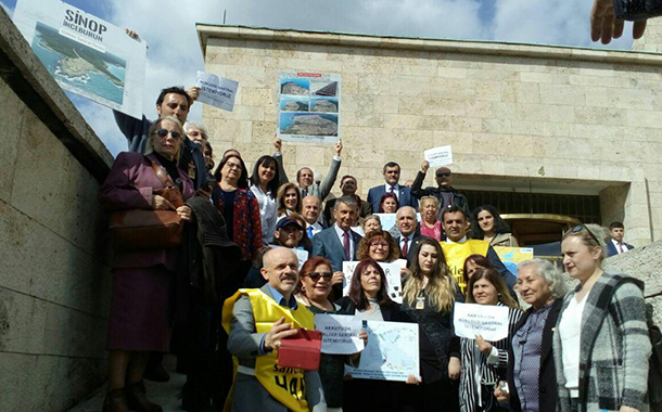 Sinop Nükleer Karşıtı Platform (NKP) ve Mersin NKP de bugün Meclis önünde eylemdeydi. Meclis önünde yapılan eylemde, Elektrik Mühendisleri Odası’nın birçok kere yayımladığı raporlarla Türkiye’nin nükleer enerjiye ihtiyacı olmadığının ortaya konulduğu belirtildi. Eylemcilerin ellerindeki dövizleri göstererek konuşmasına devam Elektrik Mühendisleri Odası Sinop Şube Başkanı Mehmet Özdağ “Bu gördüğünüz görsellerin tümünde aslında bunun sadece bir enerji projesi olmadığını ticari olarak her şeyden önce bunun ahlaksız enerji ortaya koyuyoruz” dedi.