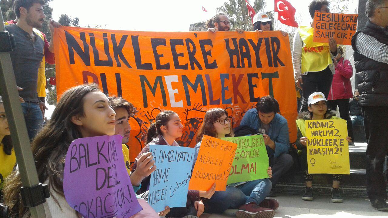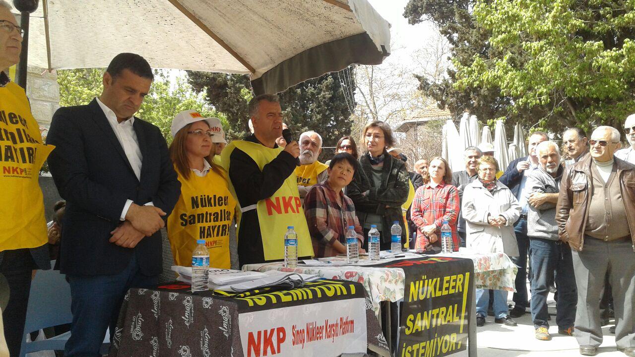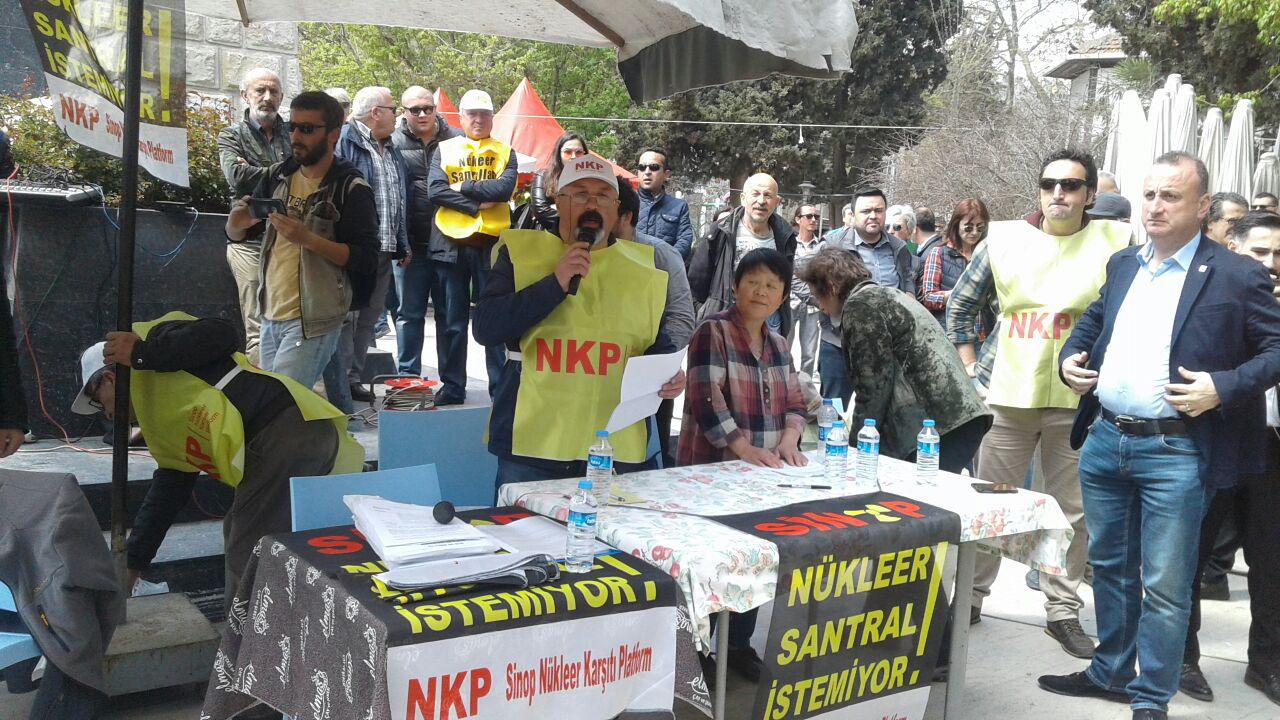 “Nükleer santral istemiyoruz” diyen Sinoplular Şehir Kulübü önünde bir araya geldi. Sinop’ta kurulacak olan nükleer santrale karşı Sinoplular’ın dün yapmayı planladığı panel ve bugün yapmayı planladığı miting İçişleri Bakanlığı tarafından yasaklandı. Bunun üzerine Nükleer Karşıtı Platform (NKP) bugün aynı saatte basın açıklamasına çağrı yapmıştı.