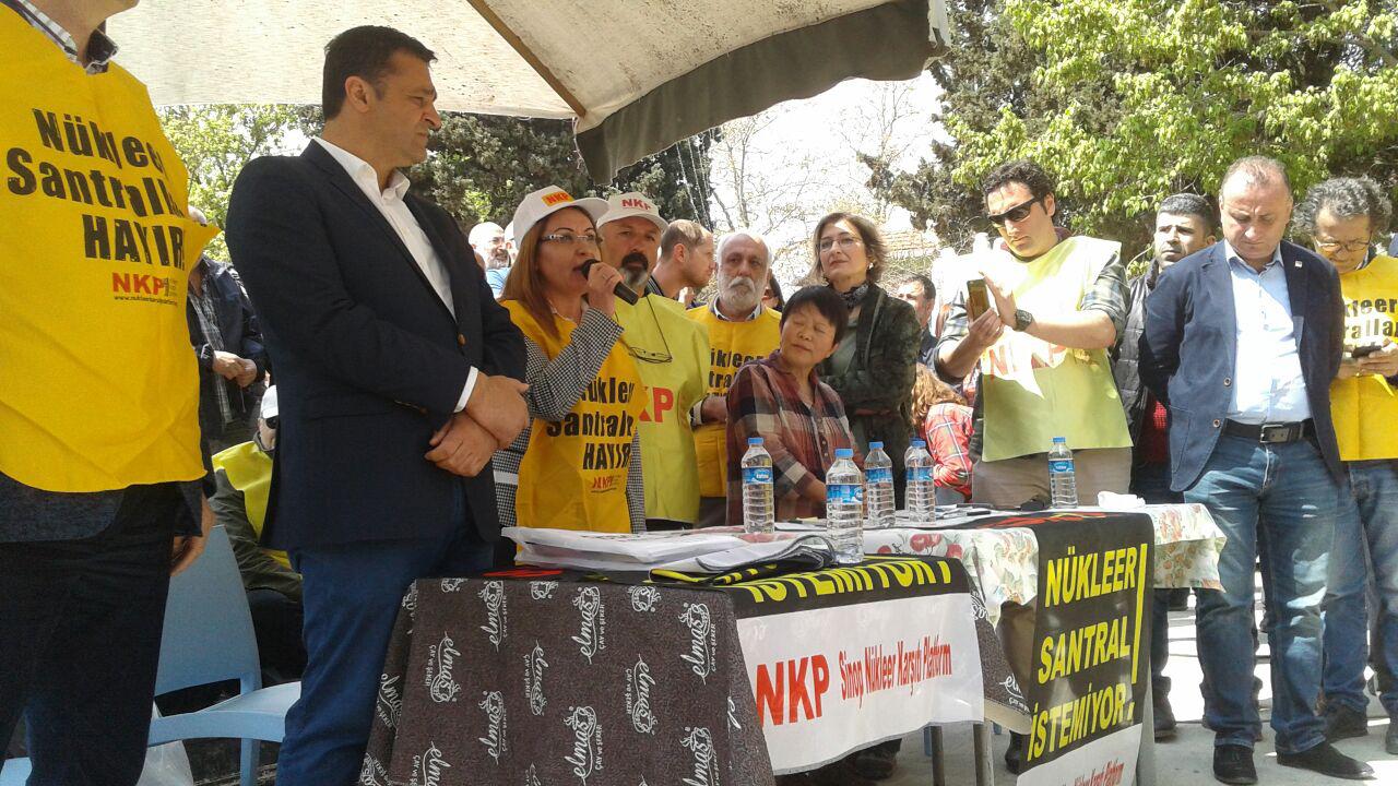 Konukçu’nun ardından söz alan CHP Sinop Milletvekili Barış Karadeniz mitingi engelleme sebeplerinin korku olduğunu ifade ederek “Ne kadar engellerlerse engellesinler biz Sinop’a ve ülkemize nükleer santral kurdurmayacağız. Bu kadar güneşin, rüzgarın olduğu bir ülkede nükleer santral kurmak ülkeye ihanet demektir” dedi.