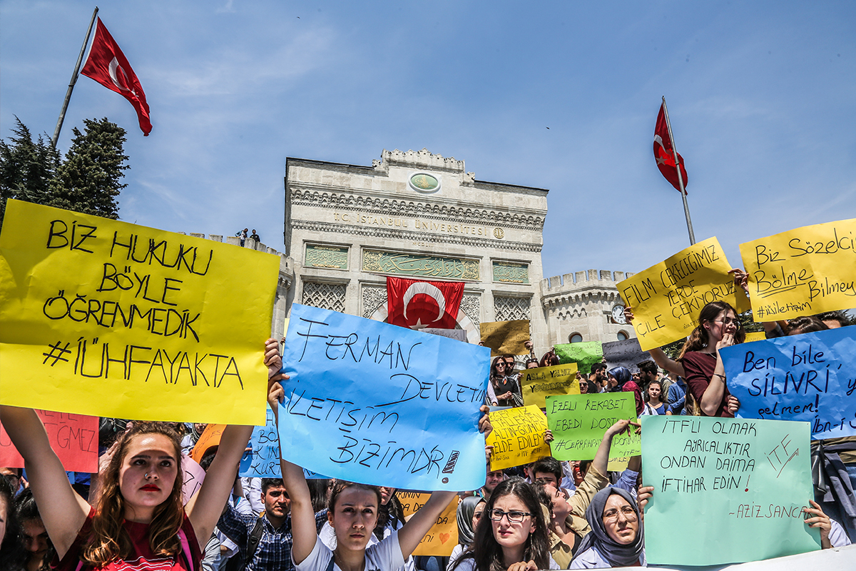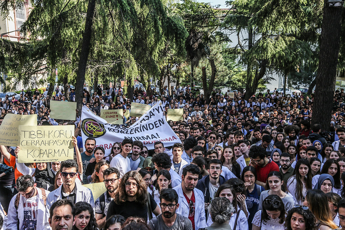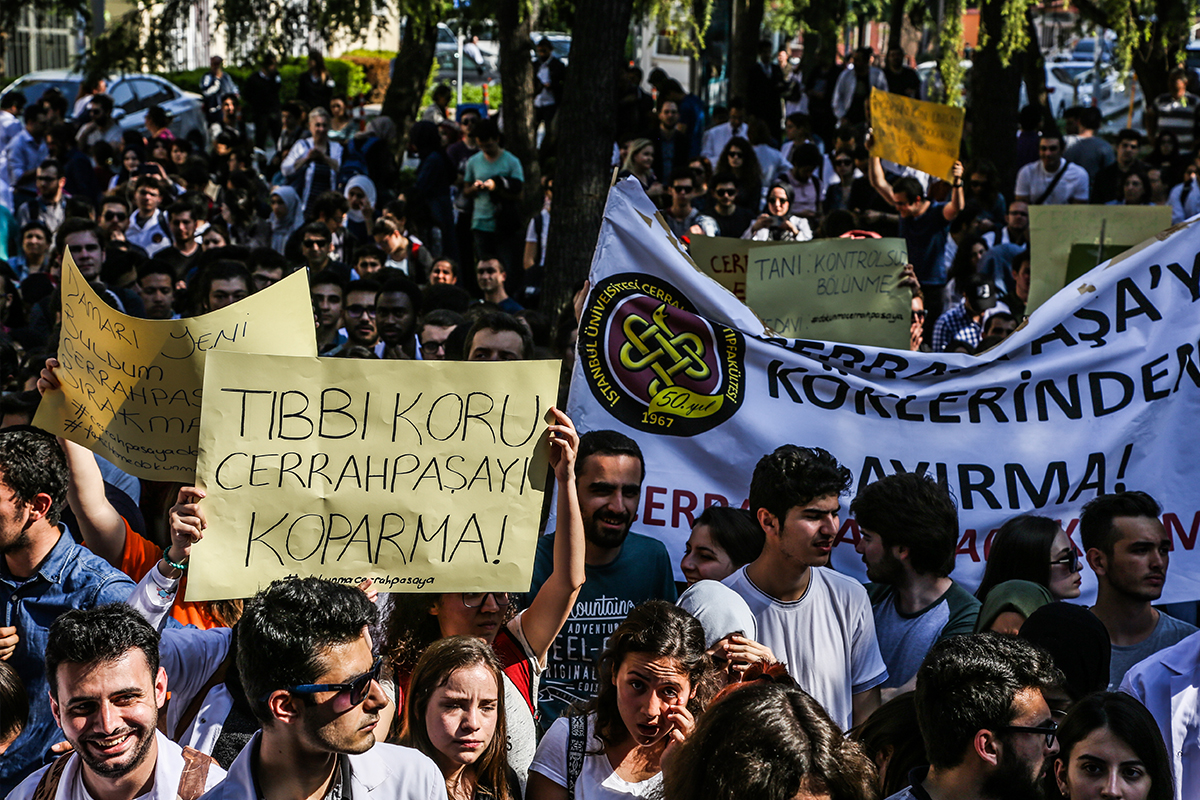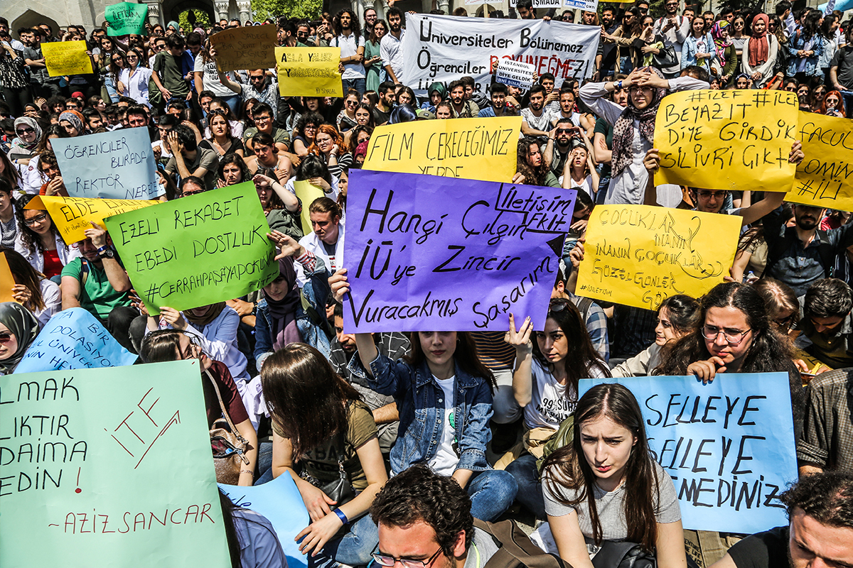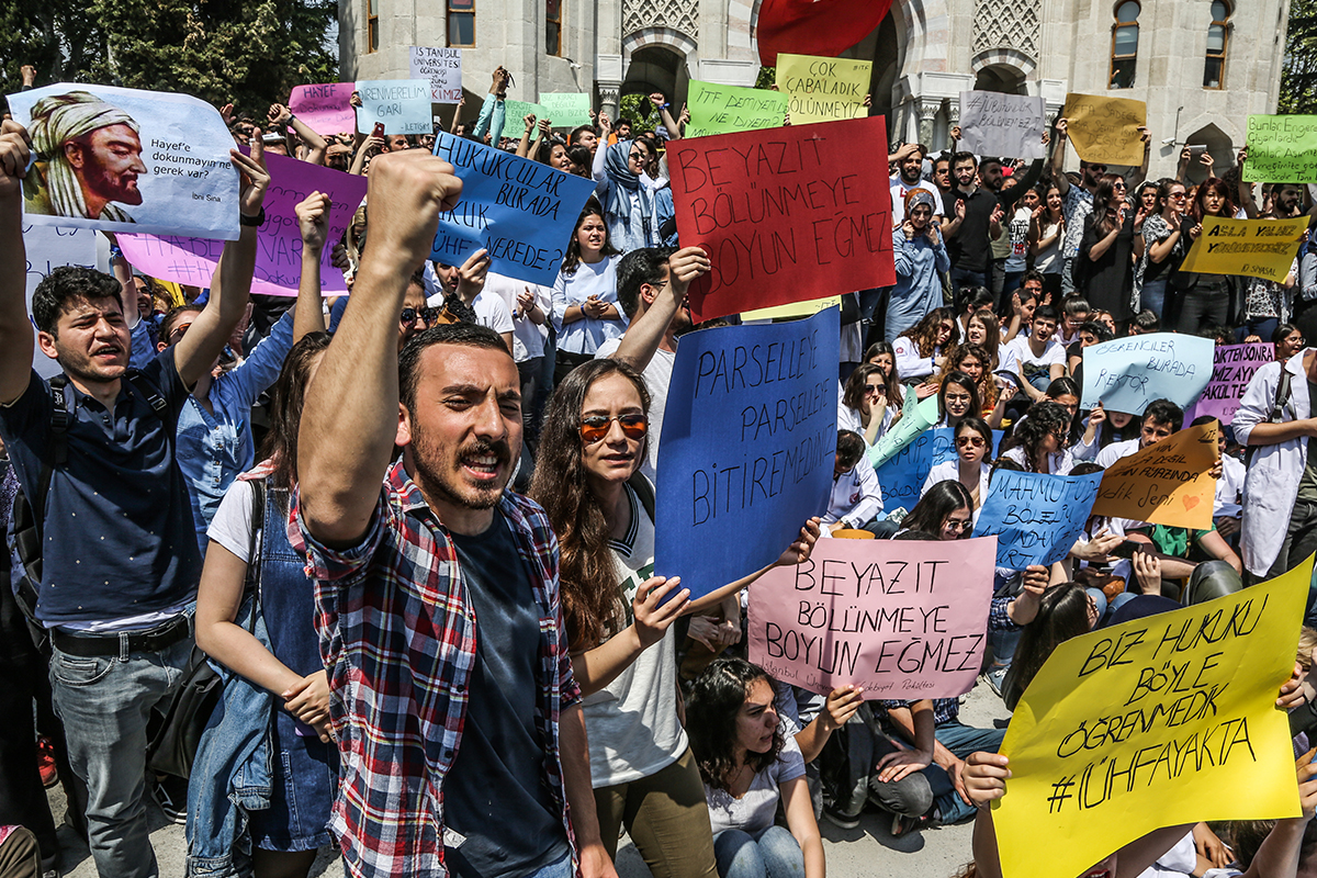 İstanbul Üniversitesi bileşenleri üniversitelerin bölünmesinin açıklanmasının ardından iki gündür eylemlerini sürdürüyor. 25 Nisan’da tasarısının TBMM’ye gelmesinin ardından üniversiteliler fakültelerinde buluşup Beyazıt Ana Kapı’ya yürüdüler. Beyazıt Meydanı’nda fakültelerin katılımı ile gerçekleşen forumun ardından toplu bir şekilde Cerrahpaşa Fakültesi’ne geçilerek açıklama ve yürüyüş yapıldı. Buluşmaları yerinde takip eden Sendika.Org muhabiri Murat Bay’ın objektifinden 25 Nisan’da İstanbul Üniversitesi