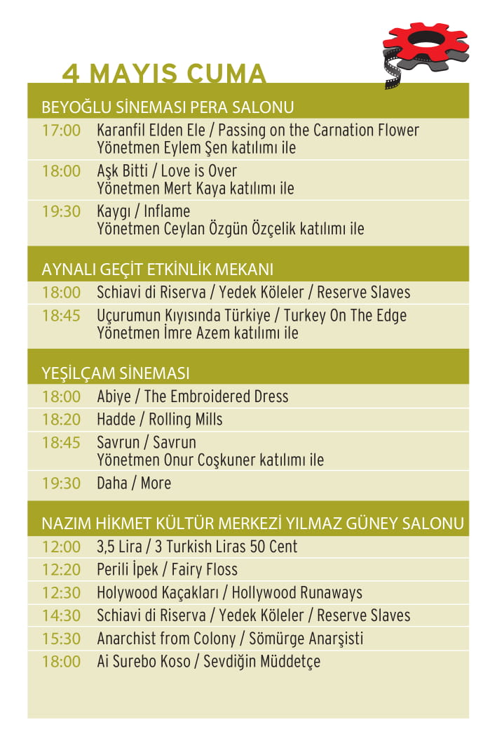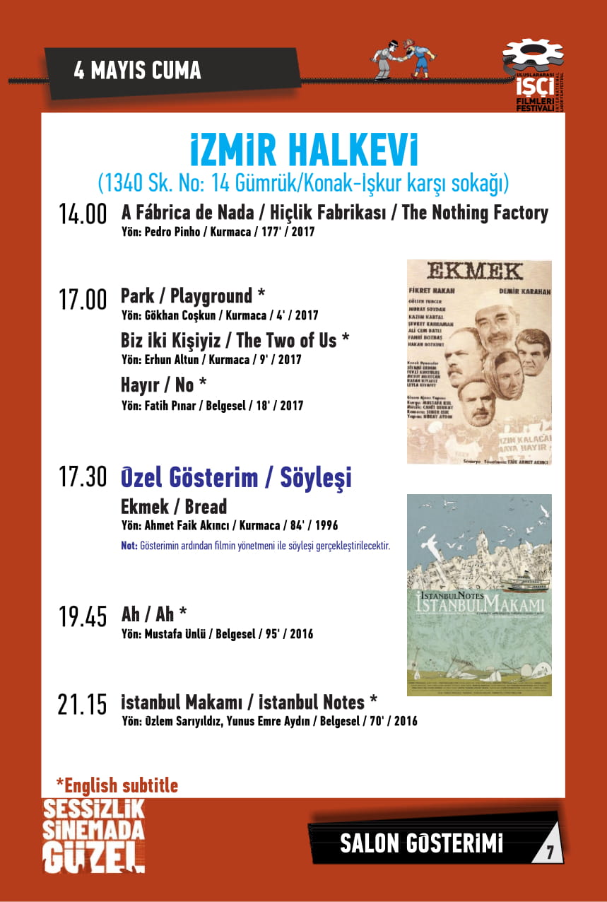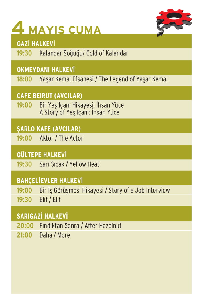 13. İşçi Filmleri Festivali’nin İstanbul, Ankara, İzmir ve Diyarbakır 4 Mayıs programları