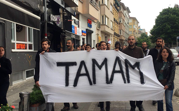 Erdoğan’ın “Milletimiz ‘tamam’ derse kenara çekiliriz” demesi üzerine Twitter’da “T A M A M” birinci sıraya yükseldi, Kadıköy sokakları “Tamam” sloganlarıyla inledi. Yürüyüşe saldıran polis 10 kişiyi gözaltına aldı