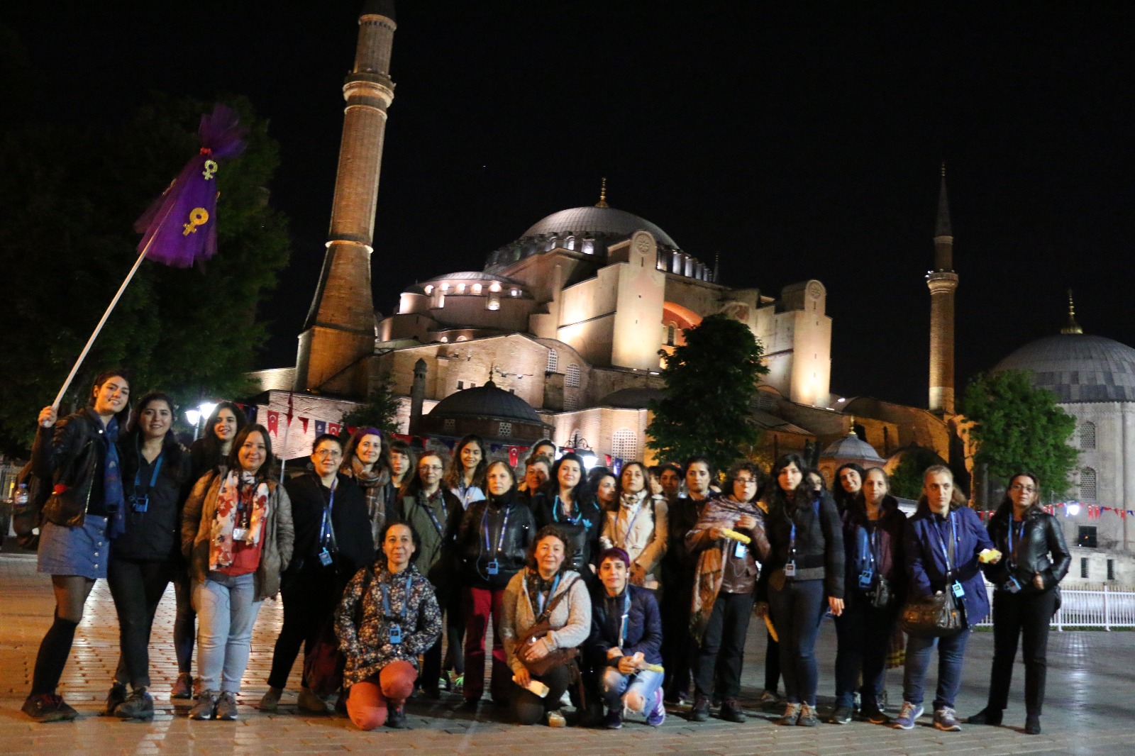 İstanbul’da kadınlar, Kadın Savunma Ağı’nın çağrısıyla gece turunda buluştu. “İstanbul gece de güzel” diyerek bir araya gelen kadınlar, saat 21.00’da Sultanahmet Meydanı’nda bir araya gelerek gece turuna başladı. Tur boyunca mor feminalı bayraklarıyla dolaşan kadınlar, bir yandan da tur rehberinden kadınların anlatılmayan tarihini dinleyerek Galata Kule’sine kadar yürüdü.
