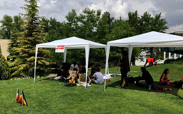 ODTÜ Rektörlüğü, ODTÜ LGBTİ+ Dayanışması’nın düzenlediği Onur Haftası etkinliklerini engellemek için fıskiyeleri açtı. Öğrenciler fıskiyeleri çöp kovalarıyla kapatarak etkinliklerini gerçekleştirdi