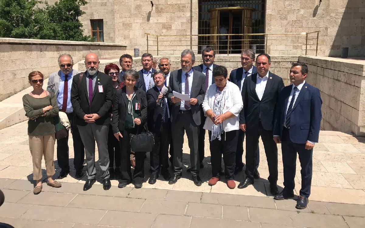 TTB, “Savaş Bir Halk Sağlığı Sorunudur” başlıklı açıklama yaptıkları gerekçesi ile haklarında idari soruşturma başlatılan üyeleri için Meclis’te basın açıklaması yaptı