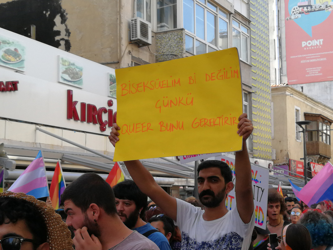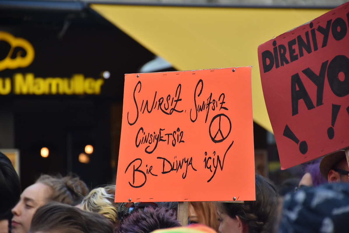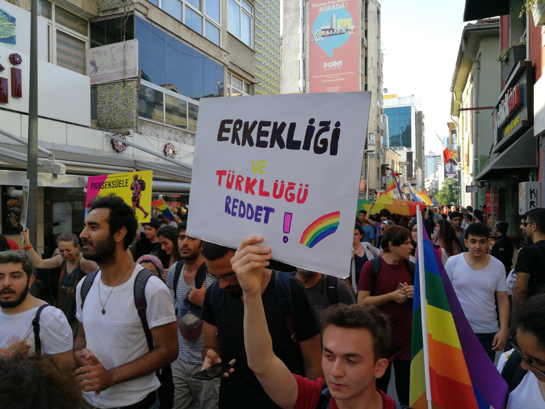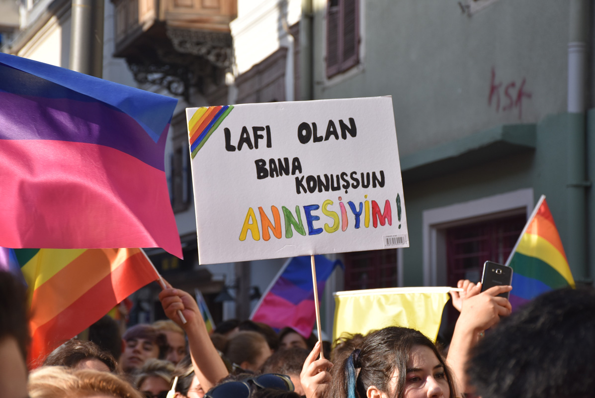 Yine ve bir kez daha, inatla, kararlılıkla ve coşkuyla yürüyoruz. Tek başımıza değil bir arada yürüyoruz. Varoluşlarımıza günah suç ya da hastalık diyerek hislerimizi aşklarımızı her türlü hak ve özgürlüğümüzü elimizden almaya çalışanlara karşı bugün hep birlikte yürüyoruz. Kalıplara sığmayanlar, sevilmeye değer olmadığını düşünenler, sorunun kendisinde olduğunu düşüneler, bugün artık olduğun gibi, hissettiğin gibi olma günü. Bu yürüyüşte her birimiz, kendi biricikliğimizle ayrı ayrı güzeliz ve bir arada daha bir güzeliz.