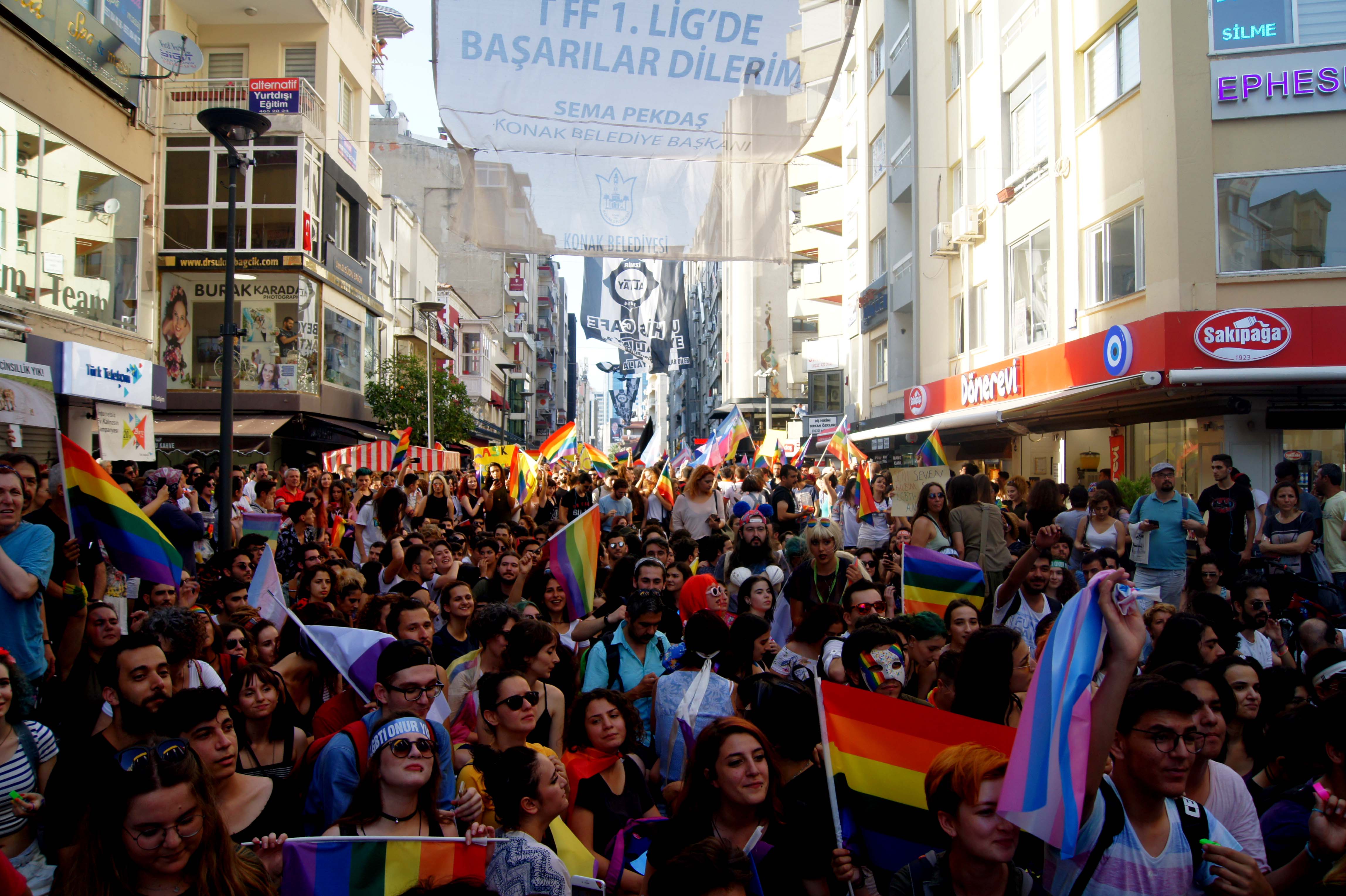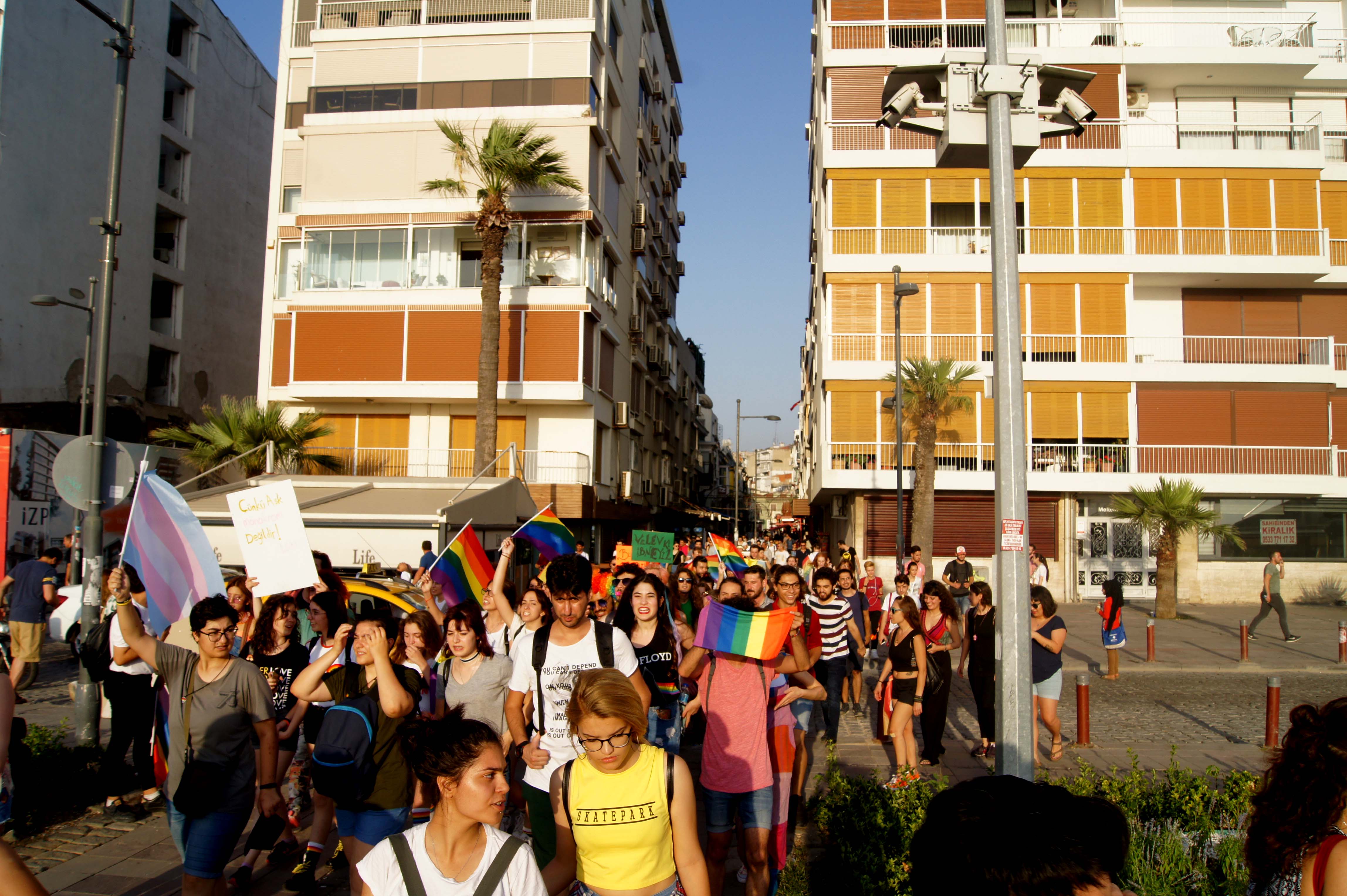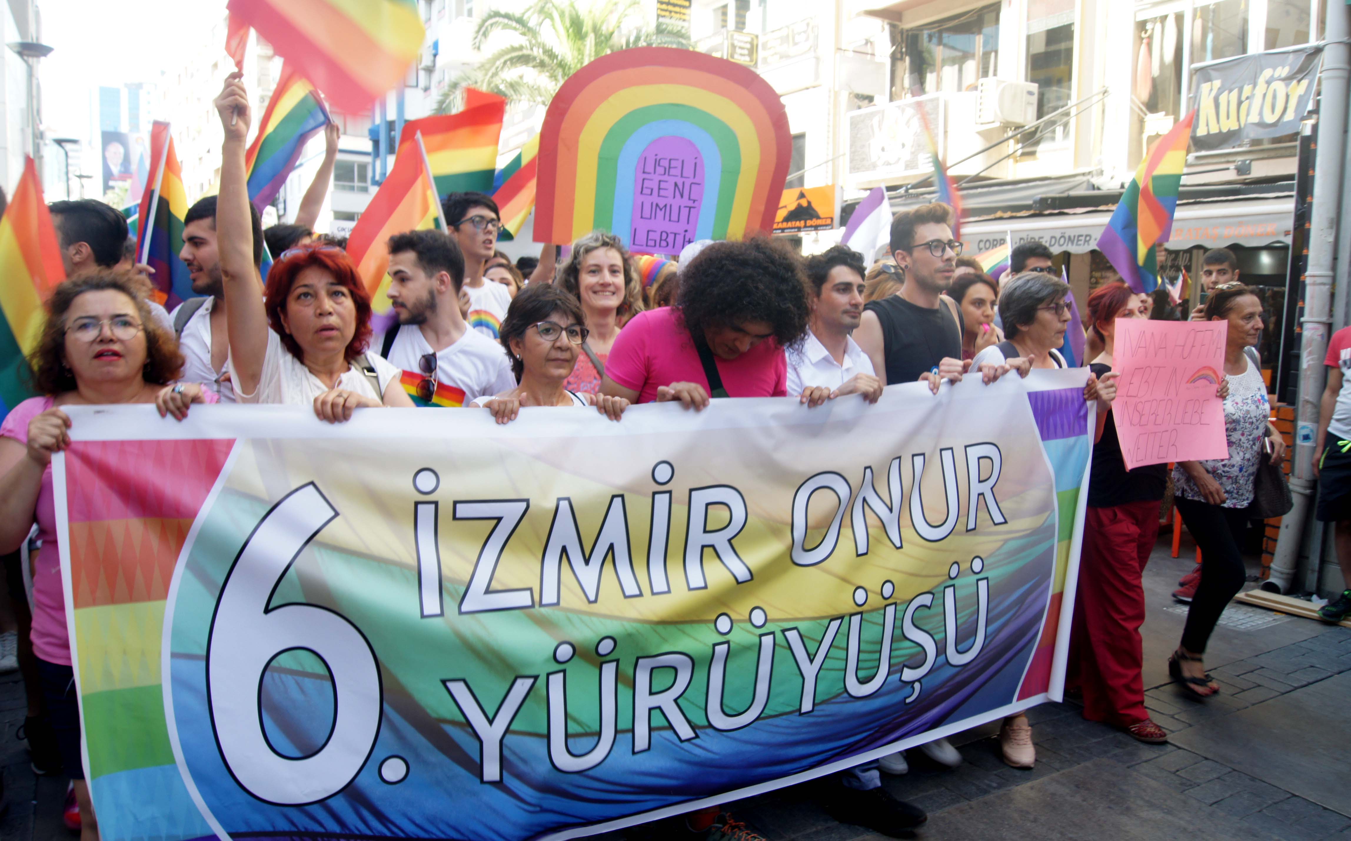 İzmir’de bu yıl altıncısı düzenlenen Onur Yürüyüşü’nde binlerce kişi Kıbrıs Şehitleri Caddesi’ni doldurdu. Yürüyüşte “Her birimiz, kendi biricikliğimizle ayrı ayrı güzeliz ve bir arada daha bir güzeliz” denildi