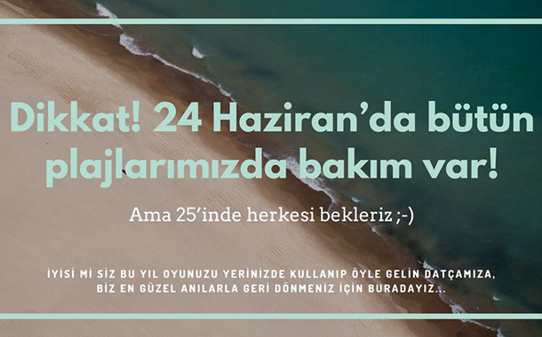 Datça Belediyesi “Dikkat! 24 Haziran’da bütün plajlarımızda bakım var! Ama 25’inde herkesi bekleriz :) İyisi mi siz bu yıl oyunuzu yerinizde kullanıp öyle gelin Datçamıza, biz en güzel anılarla geri dönmeniz için buradayız” yazılı afiş hazırlarken, Edremit Belediyesi de “Geleceğiniz için 24 Haziran günü sizlere hizmet veremeyeceğiz. Tatil için ilçemizi tercih eden herkese teşekkür ederiz ancak şimdi oy verme zamanı. Biz hep buradayız” dedi.