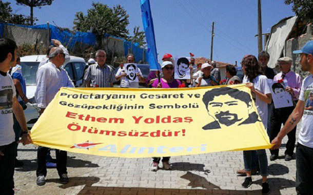 İlk konuşmayı yapan Alınteri temsilcisi Zarife Çamalan, “Ethem yoldaşa verdiğimiz devrim ve sosyalizm sözünü gerçekleştirmek için canla başla çalışacağımıza bir kez daha söz veriyoruz” dedi.