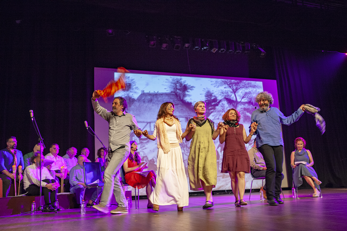 Sevgili dostlarım hoş geldiniz. Yıllar önce ortaokuldan sonra konservatuvar tiyatro bölümüne gitmek için direnememiştim. Ama bu günlerde her türlü eşitsizliğe, haksızlığa, zulme ve kine karşı tiyatro ile direnebilmiş olmanın ve bunu sizler aracılığıyla da vesile olmanın coşkusu içerisindeyim. Emek verenlere, zaman ayıranlara teşekkür ederim. Böyle bir onuru ilk kez yaşıyorum.