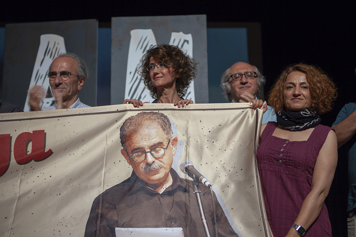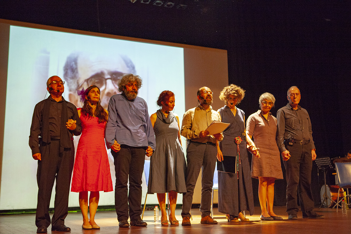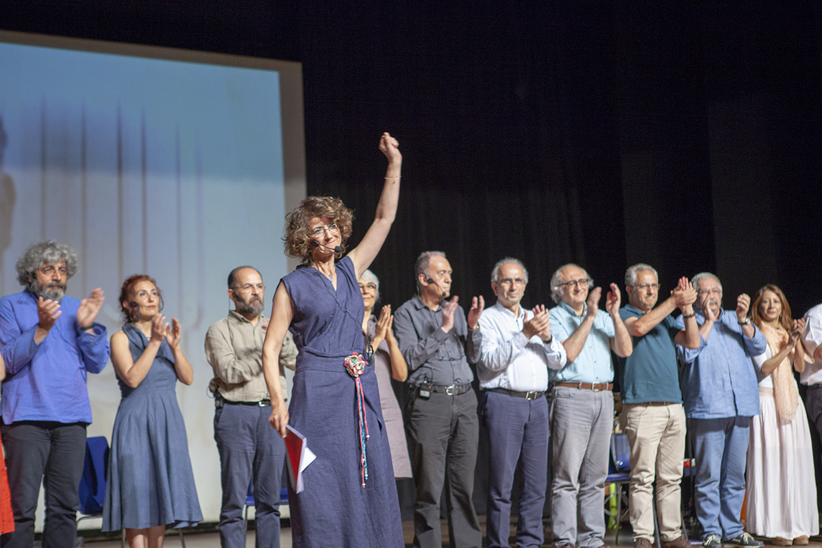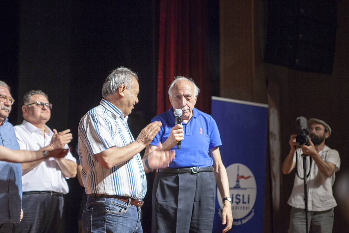 Saip’in konuşmasının ardından okuma oyunu sahnelendi. Oyunun hemen ardından sahneye çıkan Barış Akademisyenleri “Onur Hoca’ya özgürlük” pankartı açarak “Tamam” yazdı.