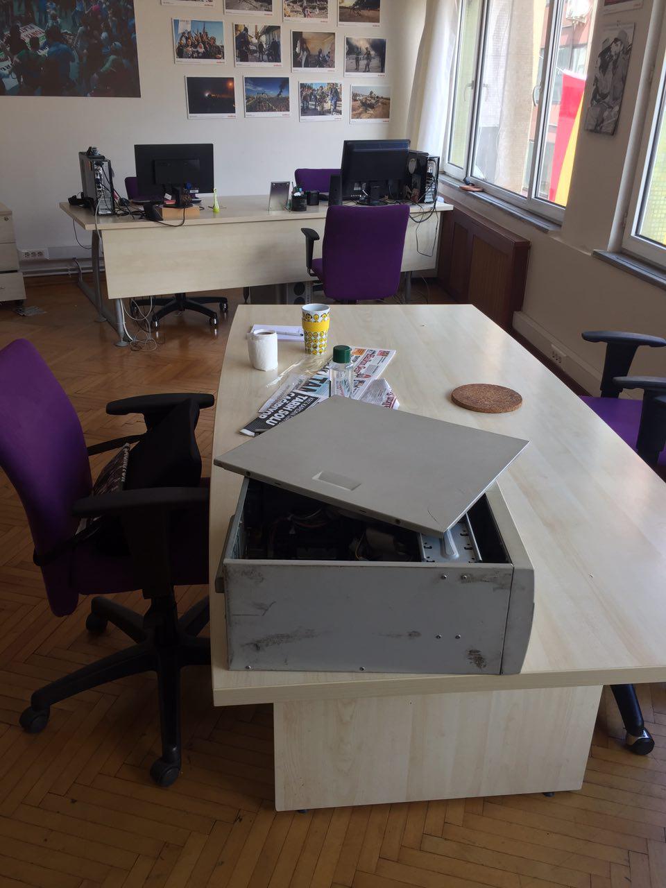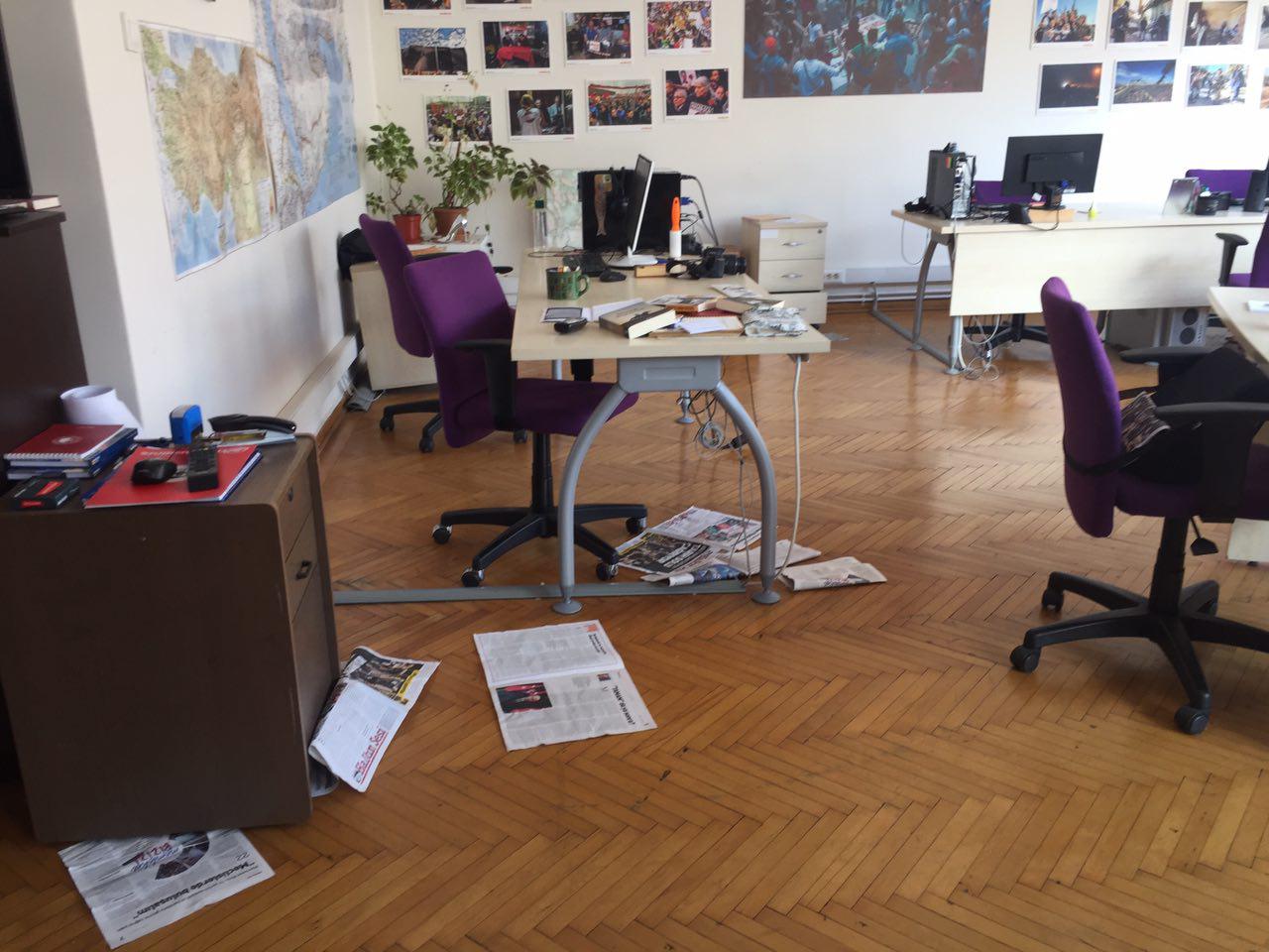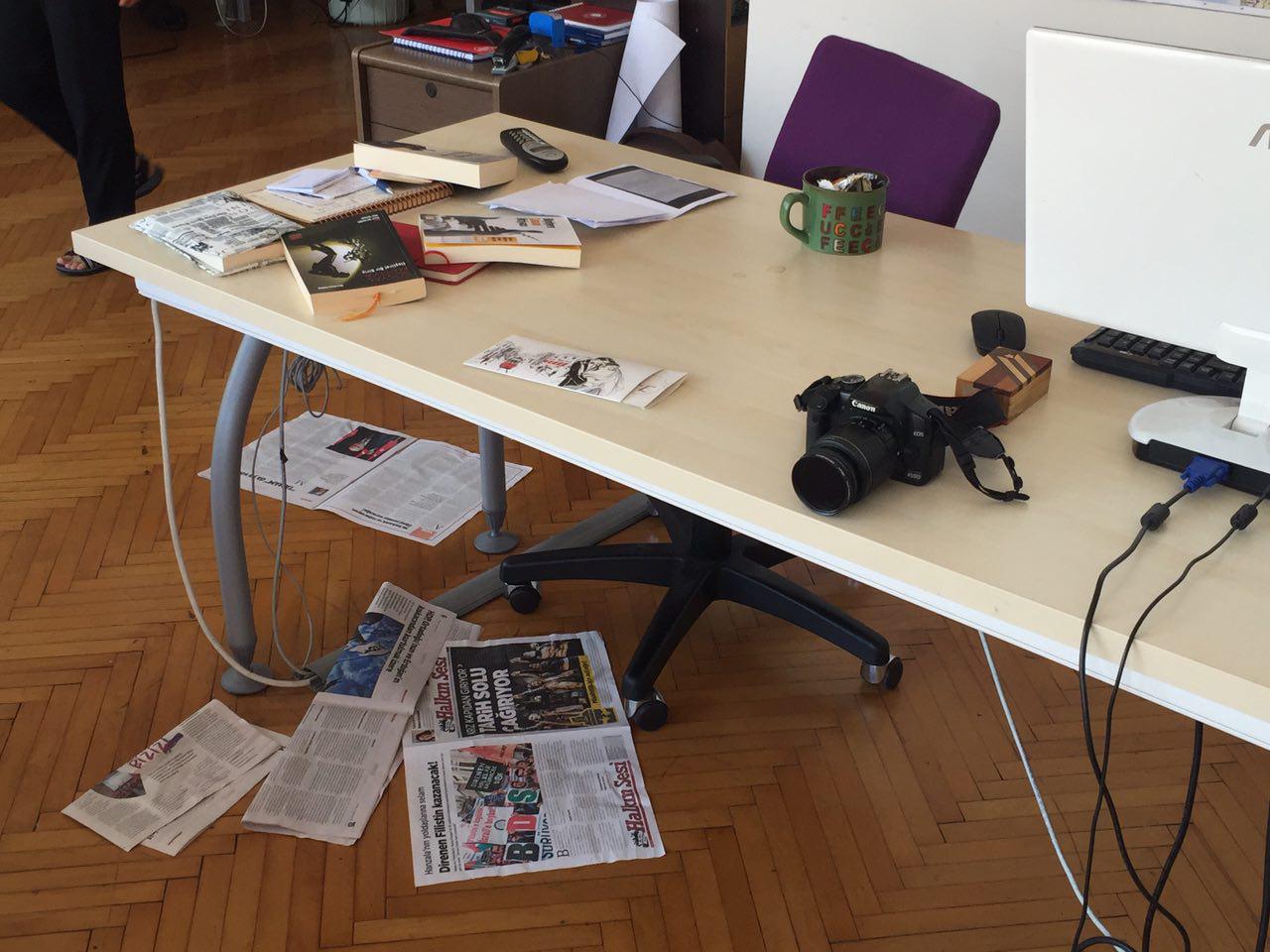 Polis, büro içerisinde hiçbir çalışan, yetkili ya da avukat yokken, yalnızca apartman yöneticisi gözetiminde arama yapmak üzere kapıyı kırdı.
