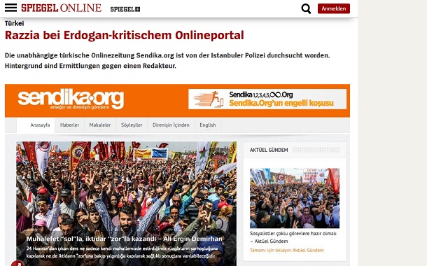 Sendika.Org’un 2013’teki Gezi eylemleri boyunca ana haber kaynaklarından biri olduğunu ve Erdoğan’a karşı eleştirel haber ve yazıların adresi olduğunu belirten Spiegel, sitenin hakkındaki erişim engellerine rağmen yeni adresiyle yayın hayatına devam ettiğini belirtti. Baskının ardından Demirhan’ın “Muhalefet ‘sol’la, iktidar ‘zor’la kazandı” başlıklı yazısının sitede yayımlanmasına değindi.