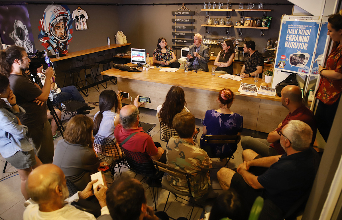 Yağmur nedeniyle parkın yanı başındaki bir cafe’de yapılan yayına Berkin Elvan’ın babası Sami Elvan, HDP ve CHP milletvekili adayları ve iktisatçı yazar Mustafa Sönmez katıldı