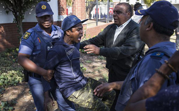 BRICS zirvesi için Güney Afrika’ya giden Cumhurbaşkanı Erdoğan, Pretoria Türk Büyükelçiliği önünde protesto edildi. Eylemciler Türk Büyükelçiliği’nden çıkan güvenlik görevlilerinin saldırısına maruz kaldı.