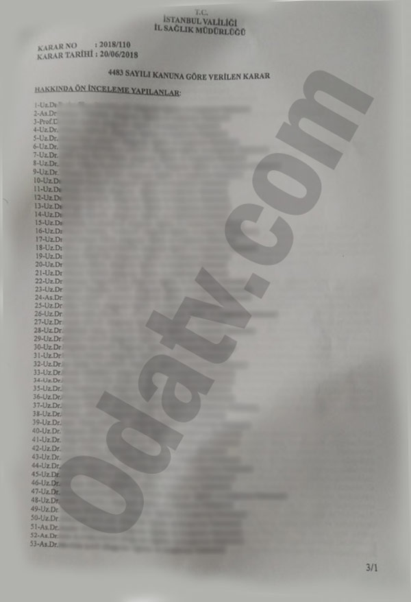 İstanbul Valisi Vasip Şahin, Başhekim Profesör Ahmet Yaser Müslümanoğlu’nun da aralarında bulunduğu kamu görevlisi 59 doktor hakkında soruşturma izni verdi. Vali Şahin, 20 Haziran tarihinde aldığı 2018/110 sayılı kararı, Bağcılar Eğitim ve Araştırma Hastanesi Başhekimliği’ne de bildirdi.