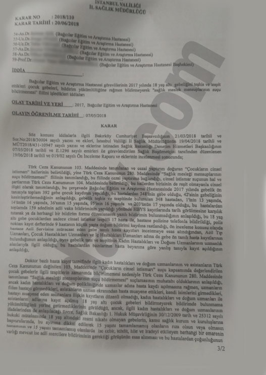 Odatv’den Barış Terkoğlu’nun haberine göre, 7 Mayıs 2018 tarihinde yapılan şikayetle ortaya çıkan skandalda, 2017 yılı boyunca 348’inin gebeliği kesinleşmiş 392 çocuk gebeliği vakasının, adli makamlara kanuna uygun şekilde bildirilmediği ortaya çıktı.