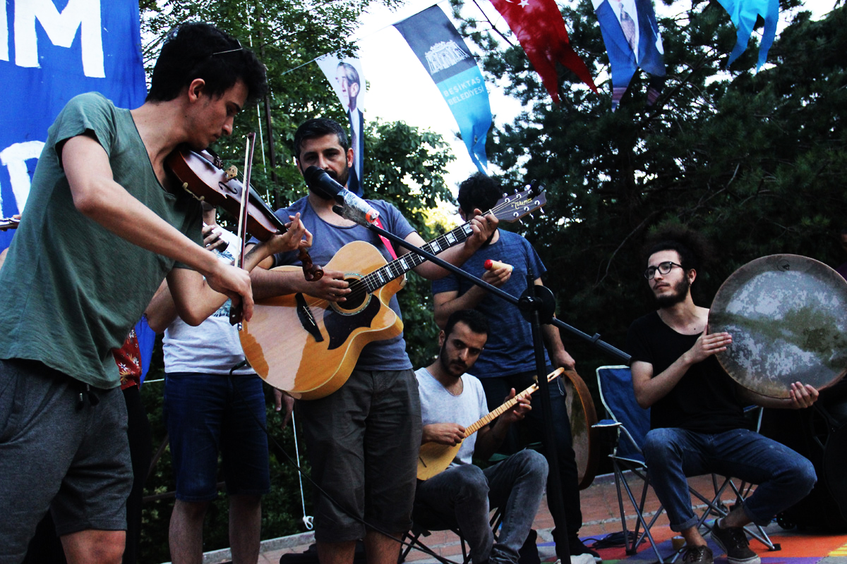Beşiktaş Kaymakamlığı’nın “güvenlik önlemi alınamayacağı” gerekçesiyle etkinliği engelleme girişimine rağmen Abbasağa Parkı’nda bir araya gelenler, şarkılar ve horonlarla Kazım Koyuncu’yu andı