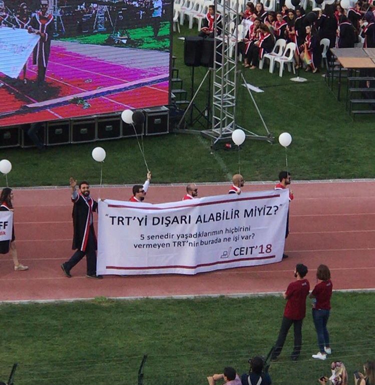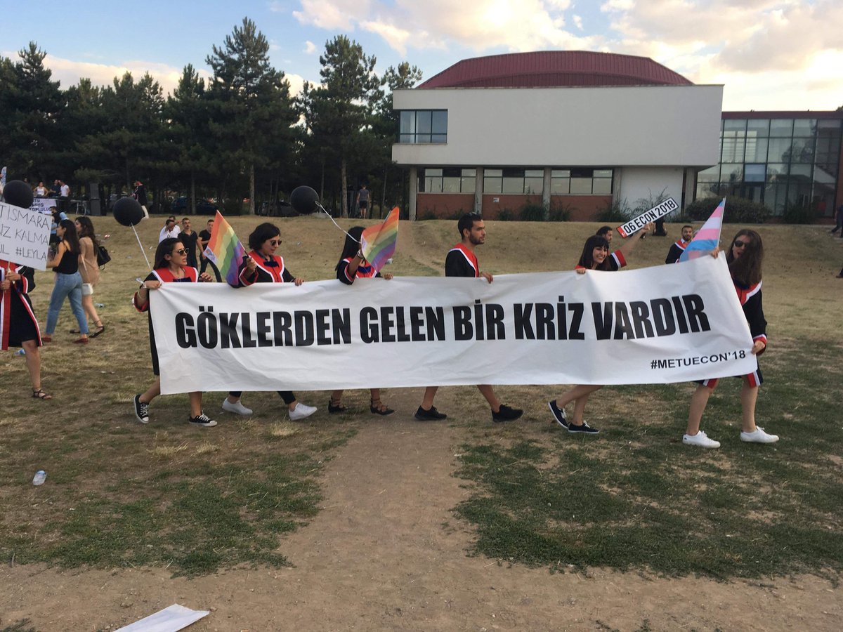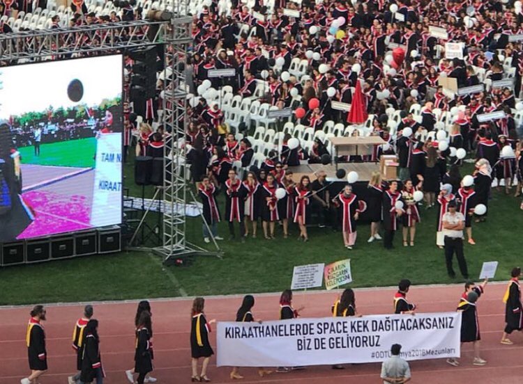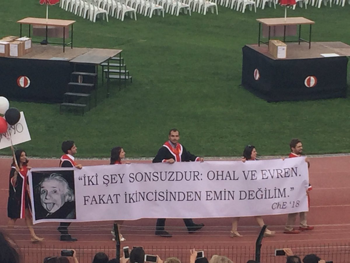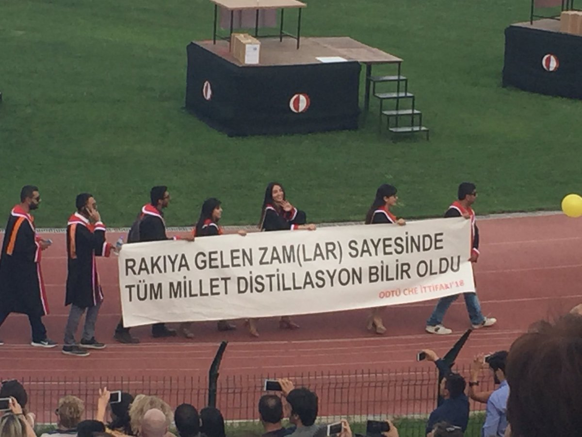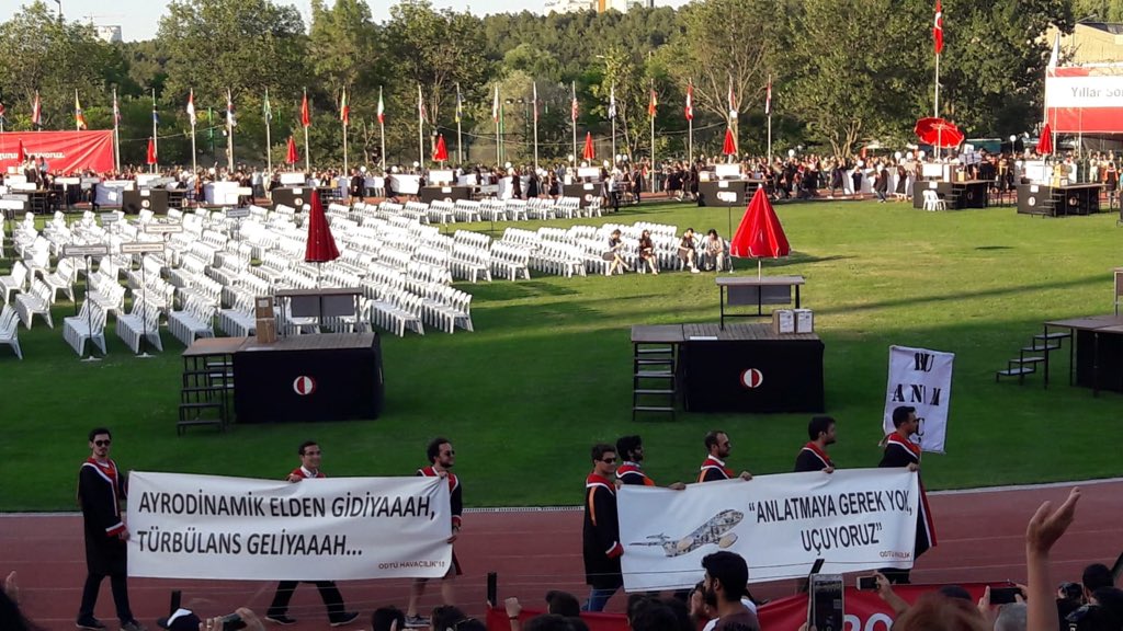 ODTÜ mezuniyet töreni her sene olduğu gibi bu sene de mezun olan öğrencilerin hazırladıkları pankartlarla gündeme geldi.