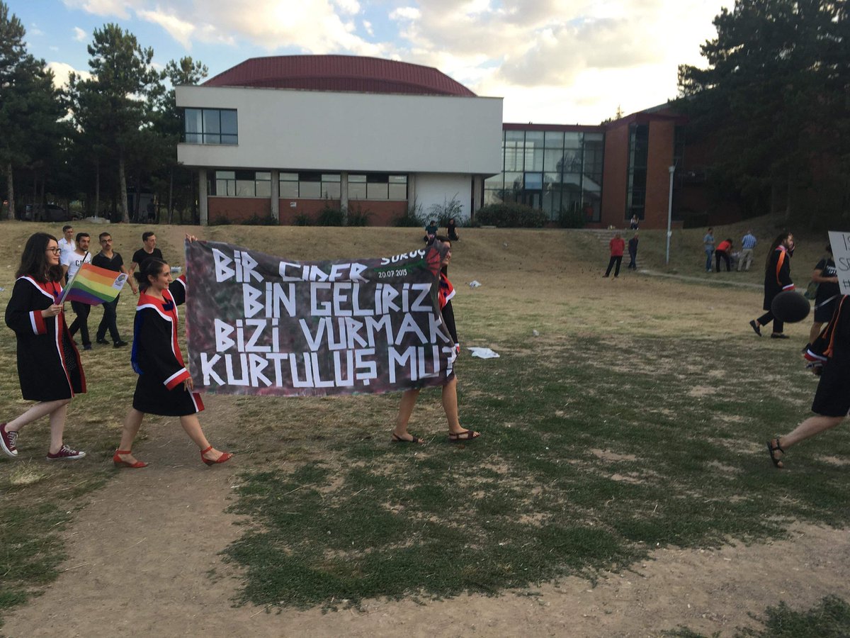 ODTÜ mezuniyet töreninde ifade özgürlüğü kapsamında olduğu yargı nezdinde tescilli “Tayyipler Alemi” karikatürünün pankartı taşıyan üç üniversitelinin ardından ODTÜ Öğrenci Temsilcileri Konseyi (ÖTK) Başkanı Özgür Mehmet Gür, sabah saatlerinde evine yapılan polis baskınıyla gözaltına alındı.