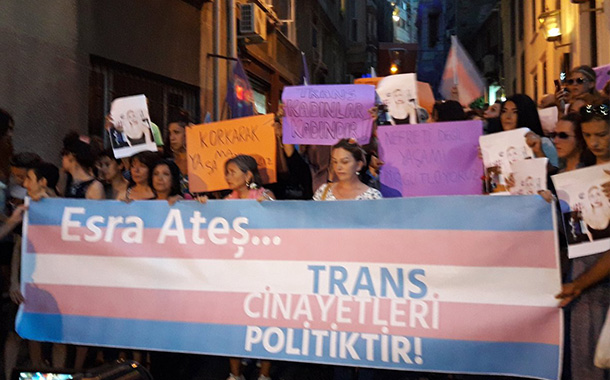 İstanbul Beyoğlu’nda trans kadın Esra Ateş 25 Ağustos’ta yaşadığı apartmanın girişinde boğazı kesilerek öldürüldü. Katil gözaltına alındı. Arkadaşları karakolun önünde saatlerce bekledi. Nöbetçi mahkeme yağma ve cinayet suçundan katilin tutuklanmasına karar verdi.