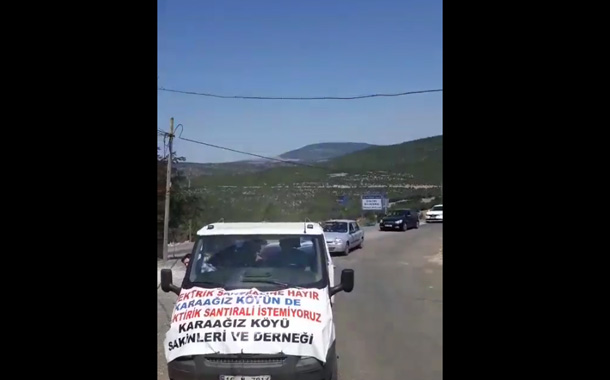 Enerji santraline direnen Karaağız Köyü sakinleri ve bölge halkı santral yapımını protesto etmek için araçlarla korna çalarak Büyükorhan ilçesine gitti