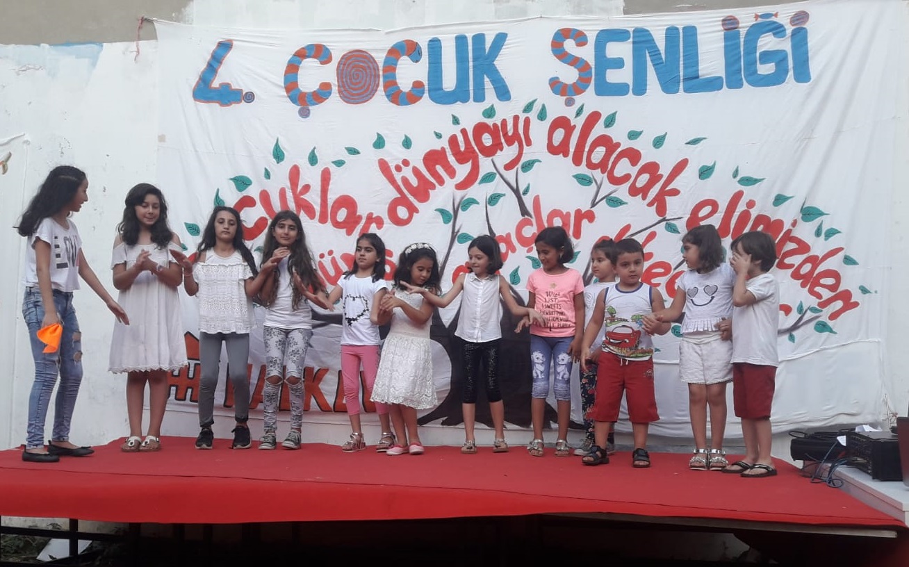 Üç hafta boyunca Sarıgazi Halkevi’nde Yaz Çocuk Buluşmaları’nda bir araya gelen çocuklar, dün (5 Ağustos) şenlik yaptı. Yaz Çocuk Buluşmaları şenliğinde çocuklar çocuklar halk oyunları, koro, tiyatro gösterisi yaptılar.