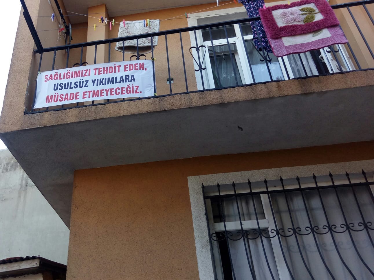 Üsküdar Kirazlıtepe’de rantsal dönüşüme karşı mahallelinin mücadelesi devam ediyor. Kiraztepeliler, Erdoğan’ın Çamlıca Cami’ye gelmesinin ardından pencerelerine pankart astı