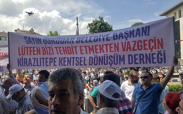 Üsküdar Kirazlıtepe’de rantsal dönüşüme karşı mahallelinin mücadelesi devam ediyor. Kiraztepeliler, Erdoğan’ın Çamlıca Camii’ne gelmesinin ardından pencerelerine pankart astı, Üsküdar Belediye Başkanı Hilmi Türkmen’e “Lütfen bizi tehdit etmekten vazgeçin” dedi