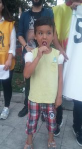 Anmanın ardından NKP üyeleri “Çocuklar ölmesin şeker de yiyebilsinler” diyerek çocuklara şeker dağıttı.